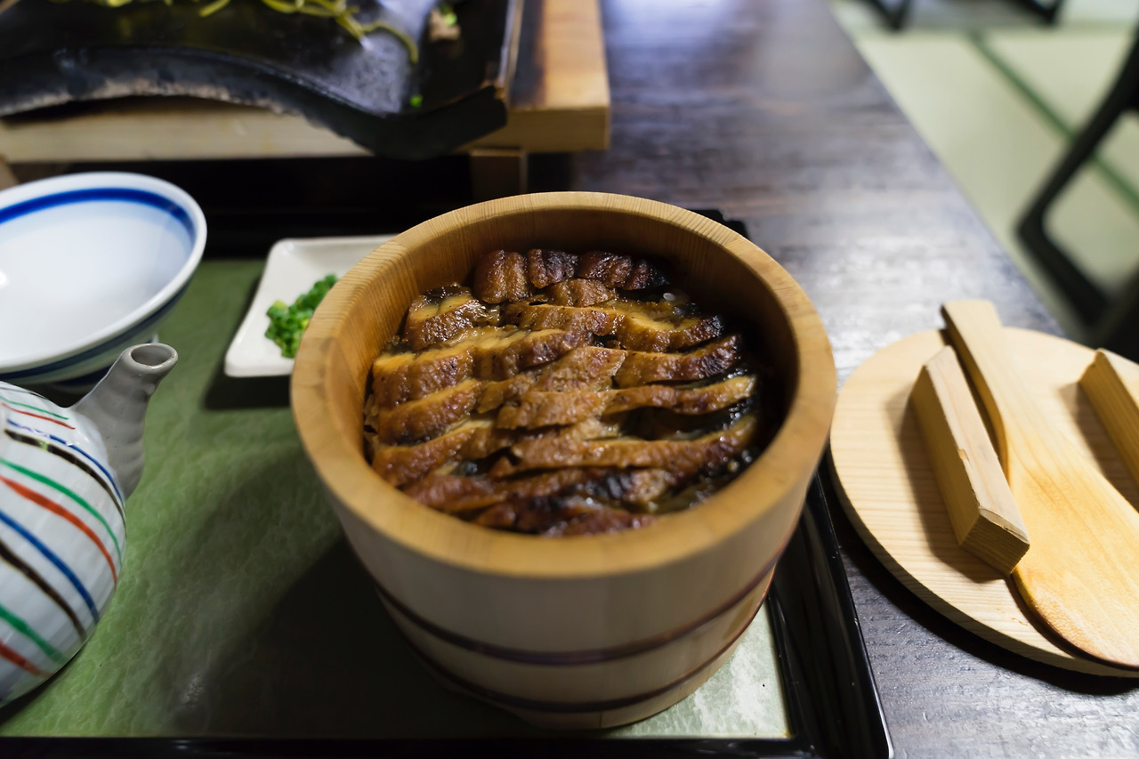 소바와 함께 주문한 우나메시는 주걱으로 4등분을 한 다음 네 가지 방식으로 먹으면 된다. 먼저 아무런 양념을 하지 않고 본연의 맛을 느껴본다. 그리고 두번째로 파와 김, 와사비를 넣고 먹어본다. 세번째로 따뜻한 녹차를 부어 오차즈케로 맛본다. 마지막 앞서 먹어본 세 가지 방법 중 가장 맛있던 방식으로 먹으면 된다.