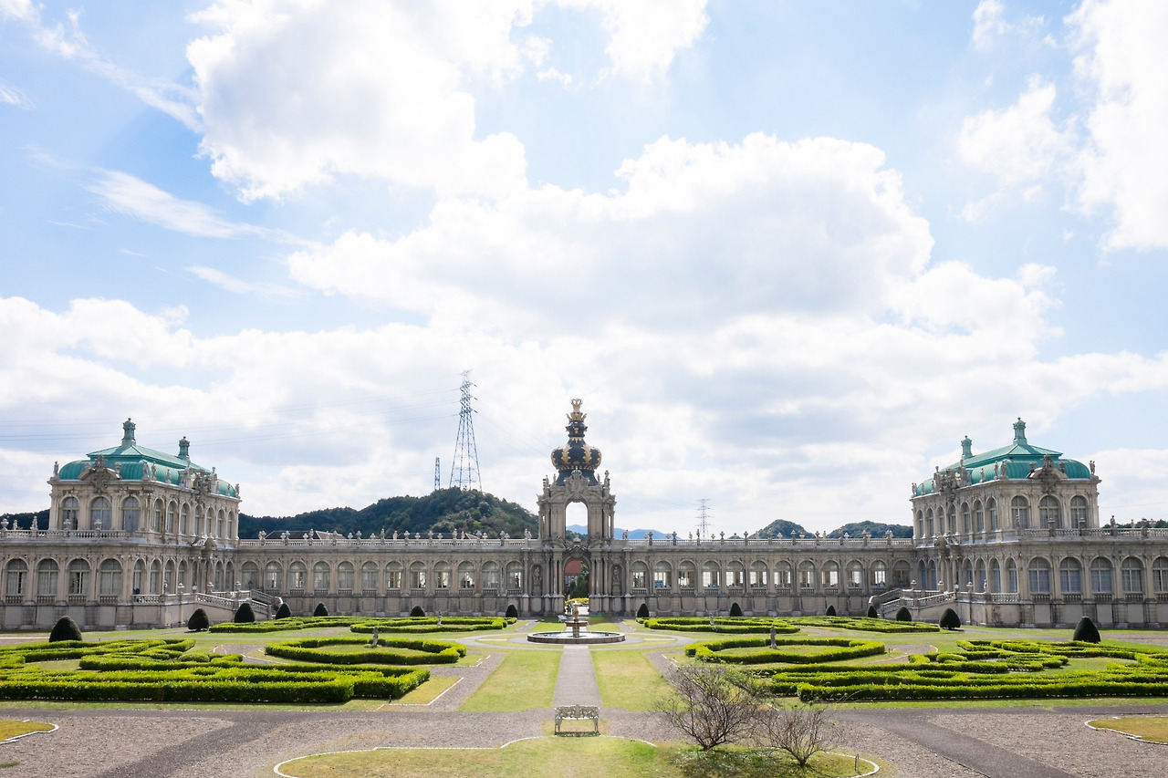 이 역시 아리타 도자기와 연관이 있다. 16세기까지만 해도 유럽에서는 주로 중국에서 도자기를 수입했다. 그런데 17세기 시작된 명청교체기(명나라에서 청나라로 넘어가는 시기)로 인해 매우 혼란스러운 정국이 지속되자 중국 도자기 수입이 어려워지게 된다. 그러자 네덜란드 동인도 회사는 일본에서 도자기 수입을 시도했고 1650년 145개의 일본 자기가 수출된다. 이것이 인기를 얻으면서 1659년에는 56,700점에 이르는 자기가 유럽으로 대량 수출되었다. 많은 유럽 귀족과 왕들이 일본 자기에 매혹되었는데 특히 폴란드의 왕 아우구스트 2세(1670~1733)는 츠빙거 궁전 안에 일본 궁까지 만들어 일본 도자기를 수집했다고 한다. 이러한 역사적 배경을 바탕으로 아리타에 츠빙거 궁전을 본떠 만든 포세린 파크가 들어섰다. 단지 흉내만 내서 조악하게 재현한 것이 아니다. 실제 바로크 건축 양식을 가진 궁전 모습을 그대로 복제한 듯하다. 실제 유럽의 어느 궁전에 와 있는 듯한 착각을 불러일으킬 정도다.