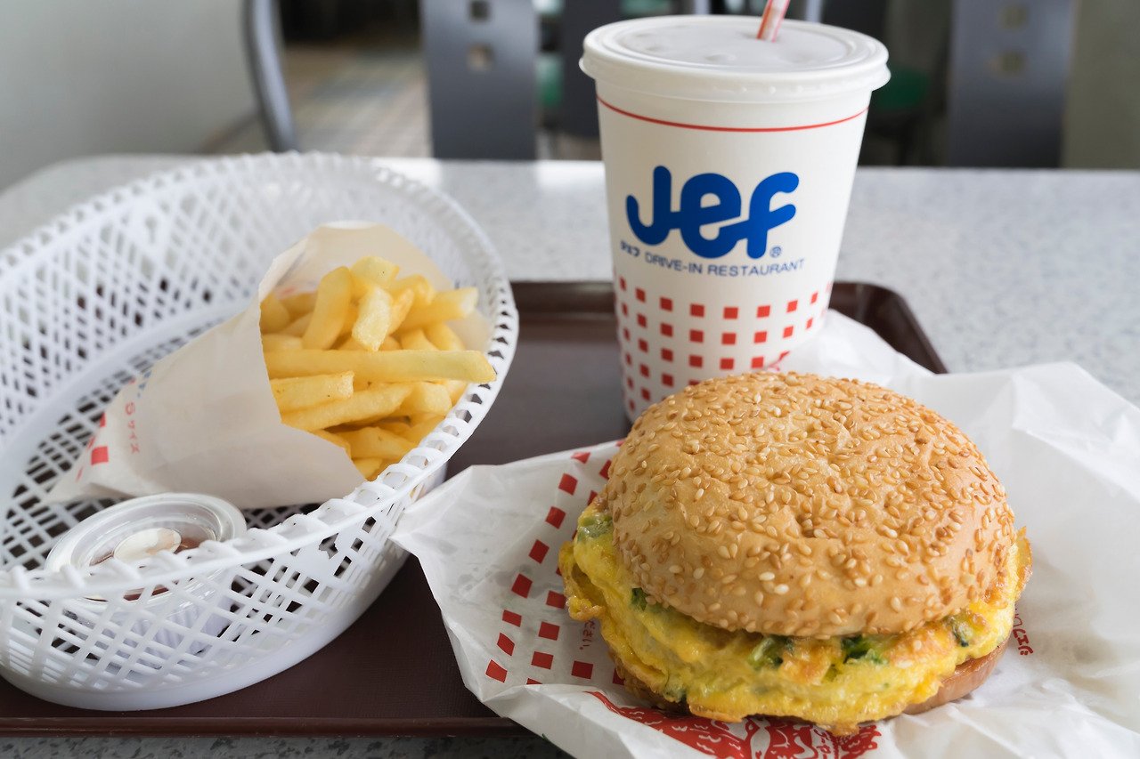 이런 고야와 햄버거의 조합. 낯설지만 왠지 호기심을 불러일으키는 조합이다. 오키나와에서는 30여 년 전부터 고야가 들어간 고야 버거를 만들어 먹었을 만큼 그 역사도 상당하다. 그리고 이 고야 버거를 처음 선보이는 패스트푸드점은 '제프(Jef)'는 1986년 처음 문을 열었다.