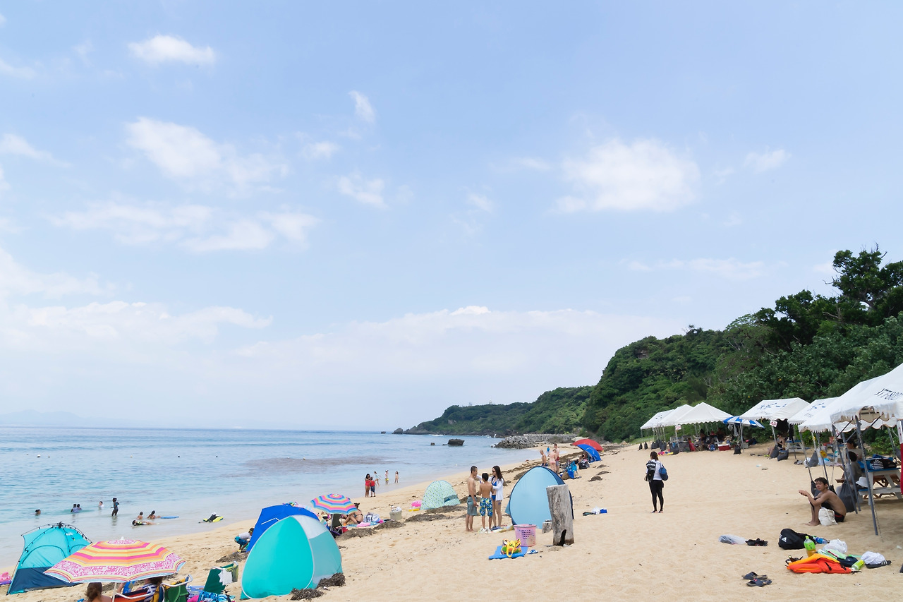 해변 앞에는 커다란 암초가 듬성듬성 서있고, 왼쪽에는 긴 절벽이 가로막고 있다. 비치의 길이는 짧지만, 해파리 네트가 쳐져 있는 수영 가능 구역이 두 곳이라 여유롭게 이용할 수 있다. 이케이 비치에서는 다양한 해양 스포츠 프로그램도 준비해놓고 있다. 투명한 유리바닥 아래로 바닷속을 탐험하는 글라스보트(1,500엔)부터 바나나보트 (1,000엔), 스노클링(4,000엔), 체험다이빙(10,000엔) 등이 있다. 해변 바비큐를 원할 경우 관리 사무실에 요청하면 가스와, 고기, 야채, 양념 등 바비큐에 필요한 모든 것을 준비해준다. 바비큐는 1인분에 1,600엔이며 가스 세트 2,000엔을 추가로 지불하면 된다. 그 밖에 텐트(2,000엔), 파라솔(1,000엔), 선베드(1,000엔) 등 해변에서 사용할 다양한 용품을 대여할 수 있다.