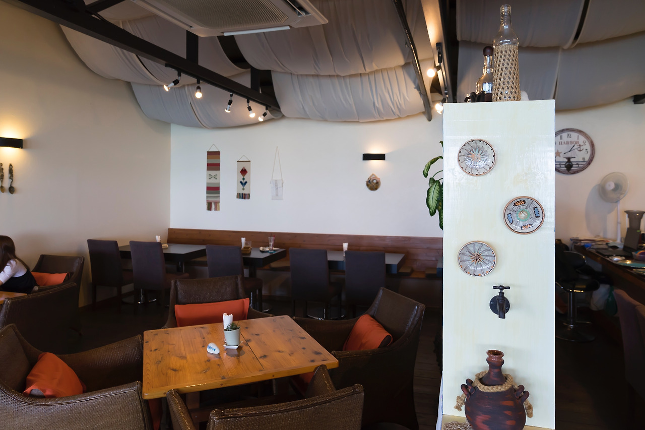 카페 옆으로 나있는 오솔길을 따라 언덕 위로 올라가면 주인장이 직접 만든 전망대가 나온다. 방문객들은 전망대 벤치에 앉아 바다를 감상하거나 햇살을 만끽하며 낮잠을 즐기기도 한다. 산토리니 실내에는 루마니아에서 가져온 소품이 곳곳에 진열되어 있어 이국적인 분위기를 느낄 수 있는데, 과거 주인장이 루마니아에 살 때 구한 것들이라고 한다.
