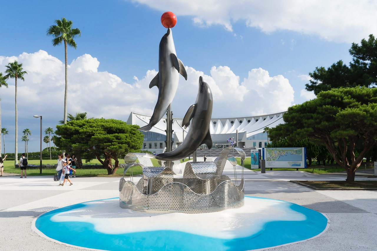 우미노나카미치의 대표 관광지인 마린월드 우미노나카미치는 1989년 개장해 두 번의 리모델링을 거쳐 새로운 수족관으로 태어 났기 때문에 '진화하는 수족관'이란 별명을 가지고 있다. 마린 월드 우미노나카미치는 540헥타르에 달하는 우미노나카미치 해변공원(海の中道 海浜公園) 내에 위치해 있다. 이곳 해변공원은 수족관뿐만 아니라 정원, 초원, 놀이시설, 수영장 등 다양한 시설을 함께 이용할 수 있어 후쿠오카 시민들의 주말 나들이 장소로 손꼽힌다. 수족관 입구에는 돌고래 두 마리가 힘차게 뛰어오르는 동상이 세워져 있고, 그 뒤편으로 수족관으로 향하는 길이 쭉 뻗어 있다. 길 양쪽에는 야자수가 심겨 있는 넓은 잔디밭이 펼쳐져 있어 여름 휴양지에 온 듯한 기분을 느끼게 한다. 야자수 길 끝에 조개를 모티브 한 반원형 구조의 수족관 건물이 보인다.