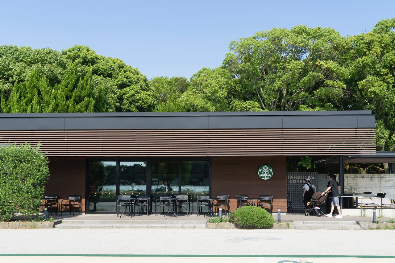 오호리 공원 내 위치한 스타벅스는 공원의 여유로움을 편안히 즐길 수 있는 공간이다. 도심 속 스타벅스와는 또 다른 분위기로 이곳은 친환경을 콘셉트로 내세우고 있다. 호수와 나무가 무성한 공원의 주변 경관을 해치지 않는 외관을 하고 있으며, 친환경 건축 자재를 사용해 건물을 지었다고 한다. 뿐만 아니라 테이블도 커피 찌꺼기를 혼합해 만든 나무로 만들었고, 가을철이 되면 공원 낙엽과 커피 찌꺼기를 이용해 퇴비도 만든다고 한다.