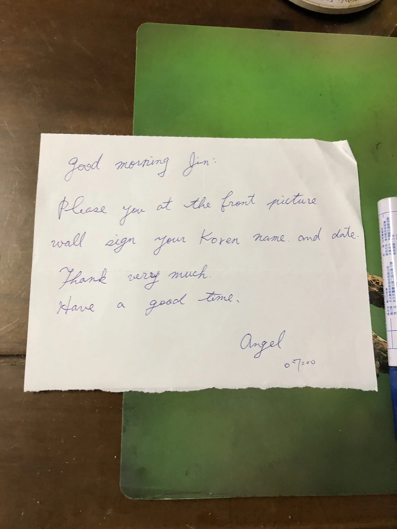 간단한 내용의 편지이지만, 여행 중 느껴보는 기분 좋은 시간이었고, 식사 내내 몇 번 읽고 답장을 남겨놓고 떠납니다. 처음 방문 이후로 타이중티켓이 싸게 나왔는지 수시로 확인을 했었고,