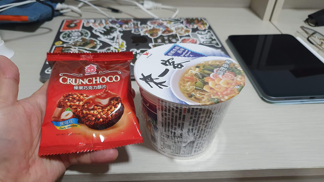 같이 들어왔던 대만친구가 도와줘서 고맙다고 주고 간 라면과 초코파이