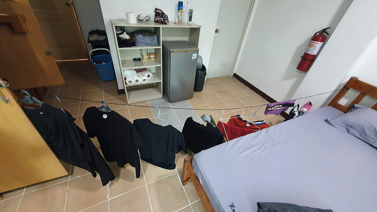 처음 한 달은 2인실에 룸메이트가 배정이 안돼서 혼자 사용하는 행운을 누린 덕분에 호텔에서 생활하듯 편하게 지낼 수 있었고, 잘 때 건조한 것을 싫어해서 일부러 저녁에 빨래해서 침실에 널어놓고, 습도 조절을 했는데, 아래 사진처럼 널어놓다 보니 조금 불편하긴 했었다.