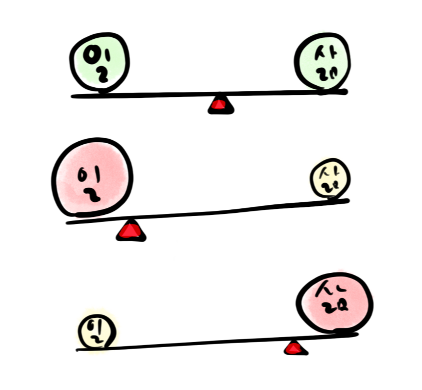 책 "원씽"의 거짓말파트의 '일과 삶에 균형이 필요하다'에도 비슷한 설명 "균형 잡힌 삶 같은 건 존재하지 않고 중심 잡기를 해야 한다"가 있습니다. 이 파트를 읽으며 직접 경험을 해서 그 의미를 깨달았다는 사실에 소름이 돋았습니다.