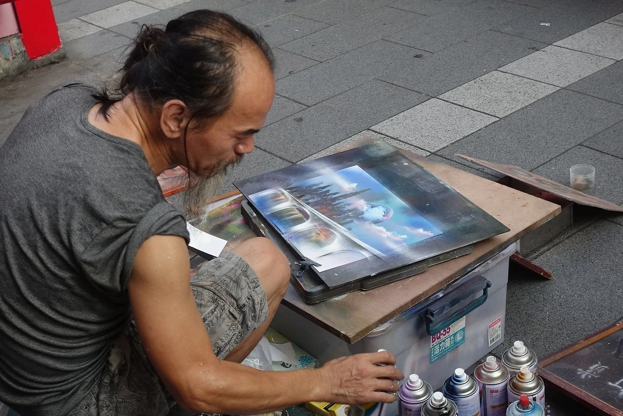 시먼딩에 나갔더니 거리에서 라카로 그림 그리는 분을 봤는데 이분은 올해(2023년) 8월에 갔을 때도 여전히 그림을 그리고 계시더군요.