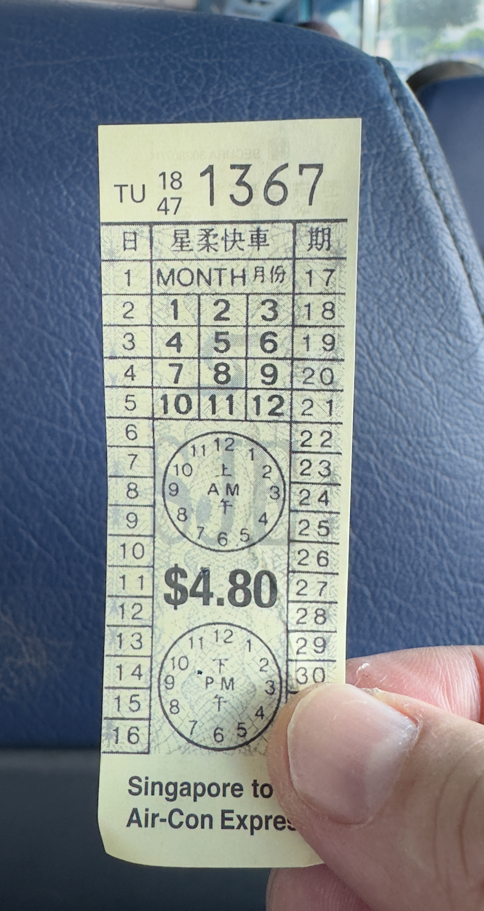 3. 4.8 싱가포르달러(매표소에서 구매) - 티켓을 절대 버리면 안 됨(출국도장 찍고 환승 시 필요)