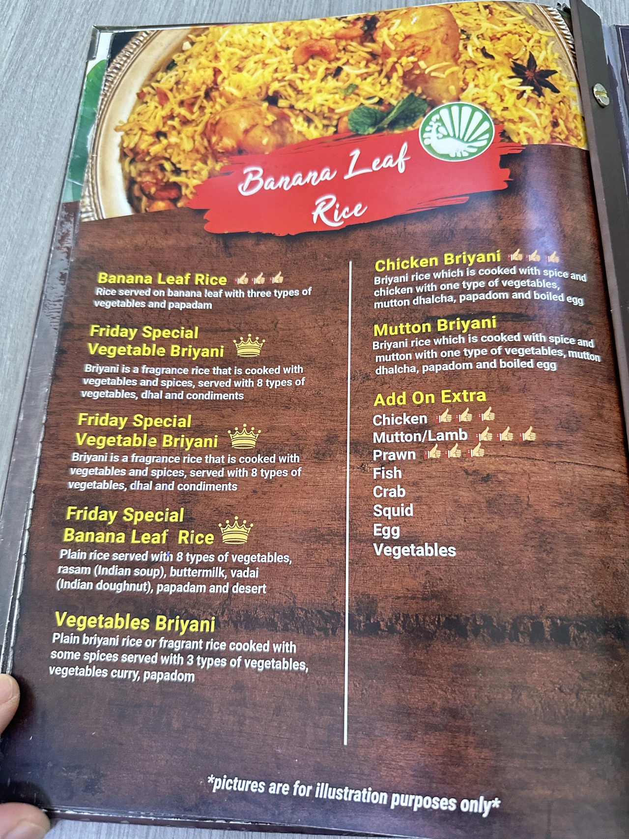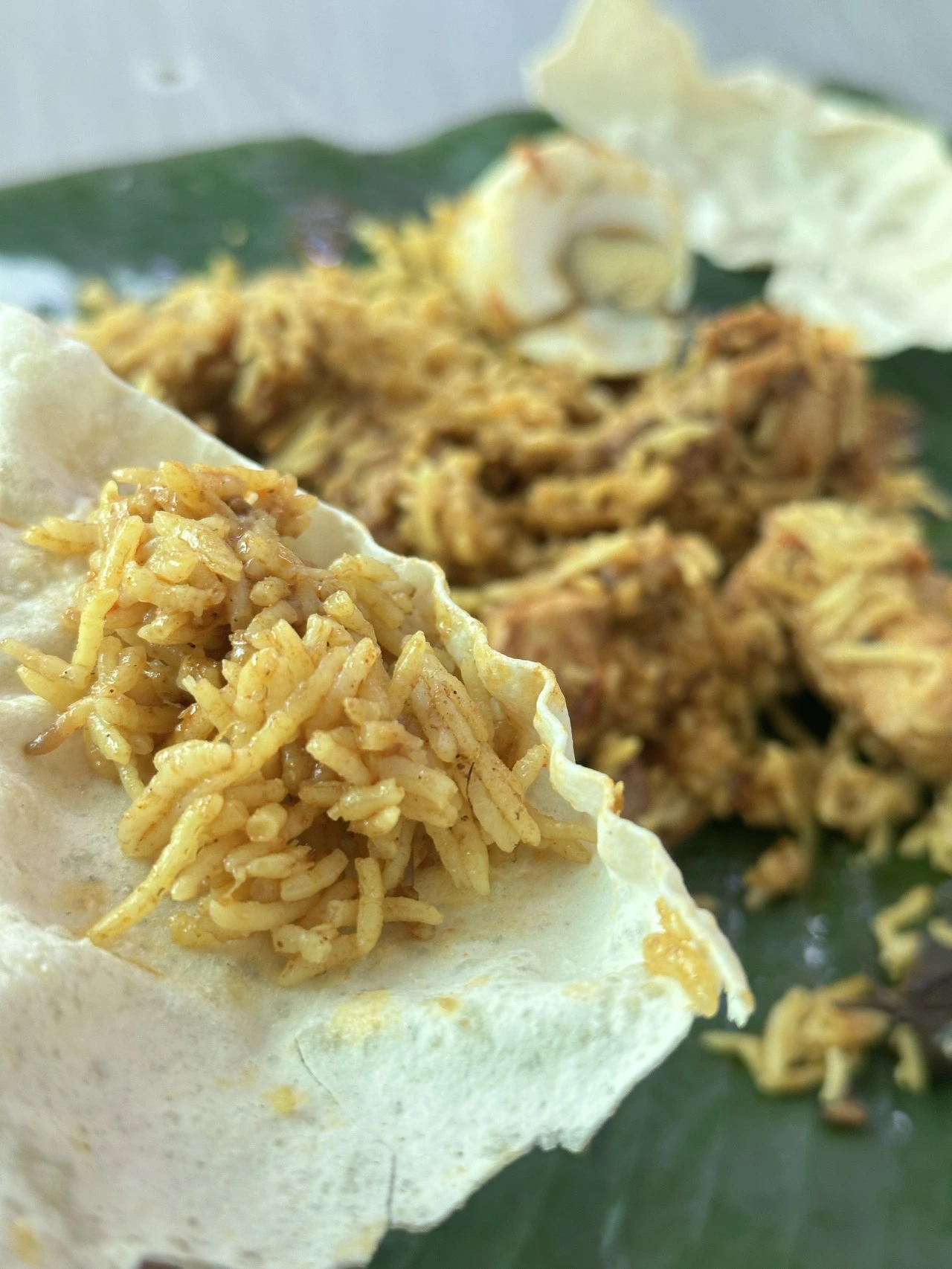 1. Banana Leaf Rice Chicken Bryiani(RM15) - 바나나잎에 나오는 치킨볶음밥입니다. 카레가 약간 섞여있고, 딱 상상하는 그 맛입니다.