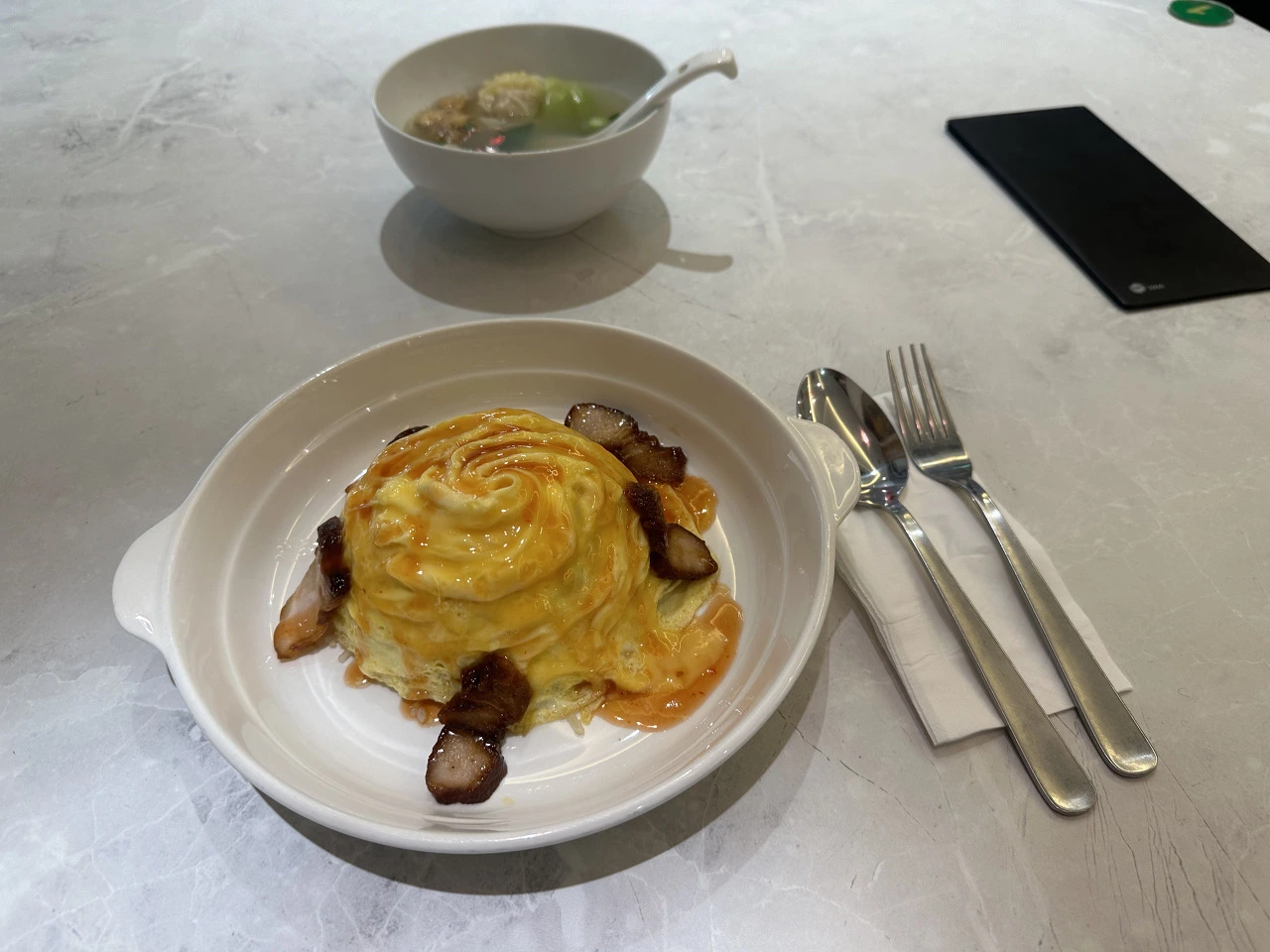 맛은 완벽합니다. 오므라이스에 있는 Rosted Pork와 소스, 볶음밥은 주방장의 내공이 최대로 발휘된 것이라는 확신이 생기더군요. 같이 주문한 완탕은 한국사람이 좋아할 고기육수에 배춧국이 섞인 맛이었고 특히 고기완자와 국물을 당장 쿠알라룸푸르에 달려가서 먹고 싶다는 생각이 들 정도입니다.