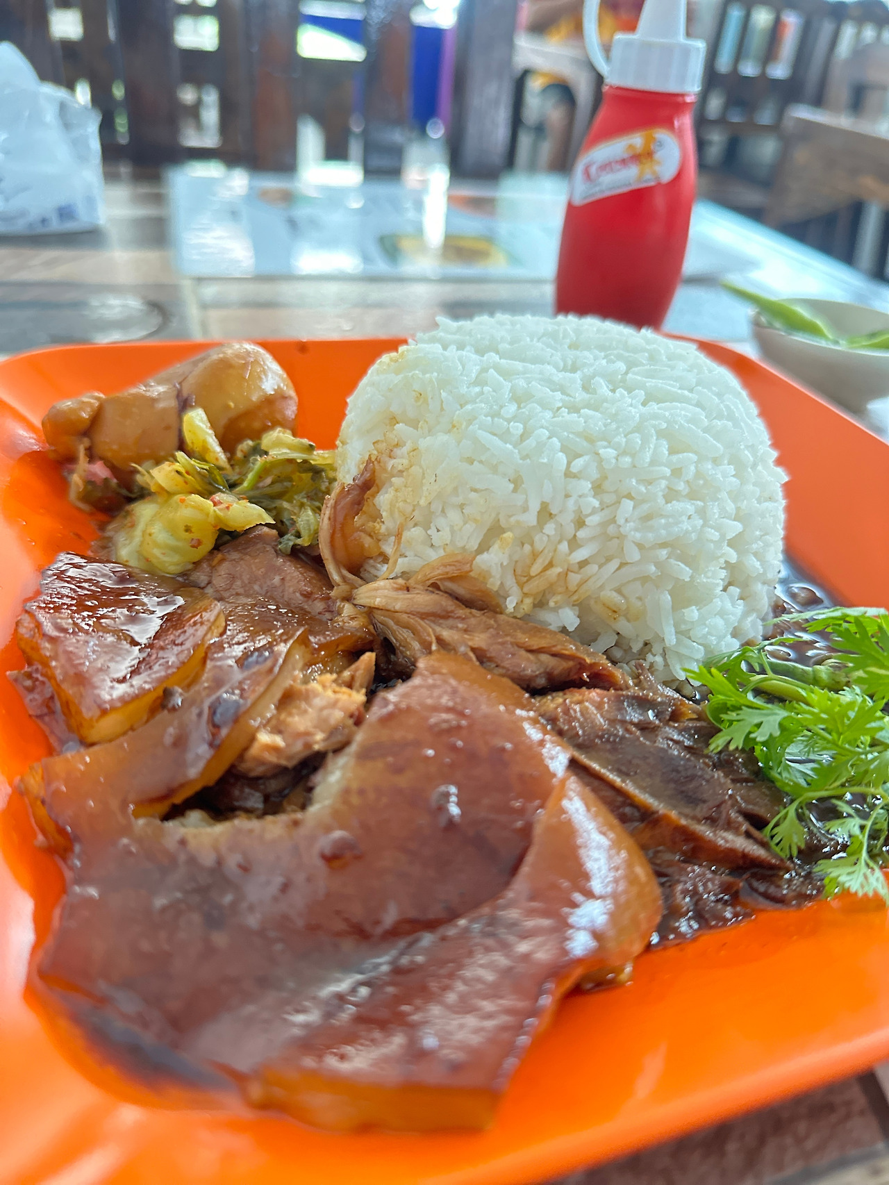 카오카무는 중국 이주민들에 의해 도입된 태국의 전통 음식 중 하나로, 돼지족발과 밥이 메인재료로 맛과 영양가 높아서 인기가 높은 메뉴입니다. 그래서, 태국을 떠나 있는 동안 많이 그리웠네요.