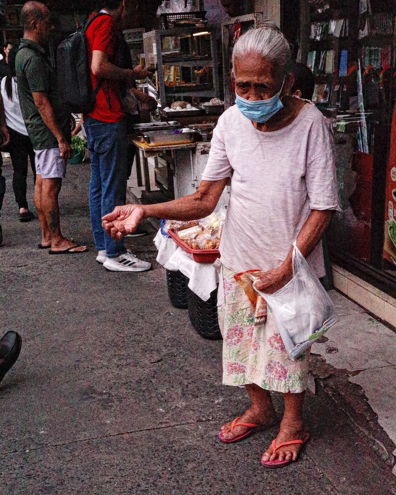 오랜 삶이 그녀의 흰머리 위에 고요히 내려앉았다.
