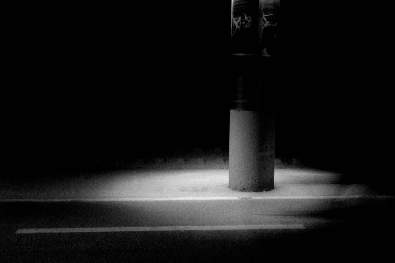 가로등 아래, 길 위를 비추는 작은 조명 하나.