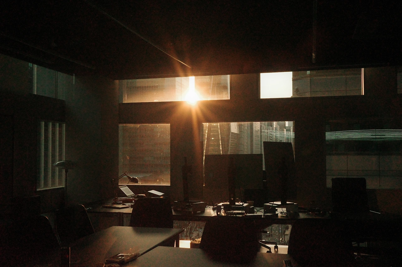 어둠이 가득한 공간 속, 한 줄기 빛이 테이블 위에 내려앉았다. 마치 누군가의 손길이 닿았던 자리처럼, 따뜻한 온기가 남아 있다.
