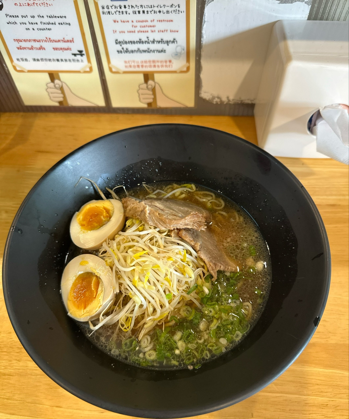 진한 간장 베이스 국물 위에 부드러운 챠슈, 아삭한 숙주, 향긋한 파, 그리고 반숙 아지타마고까지. 일본스타일 그대로 담긴 한 그릇입니다.