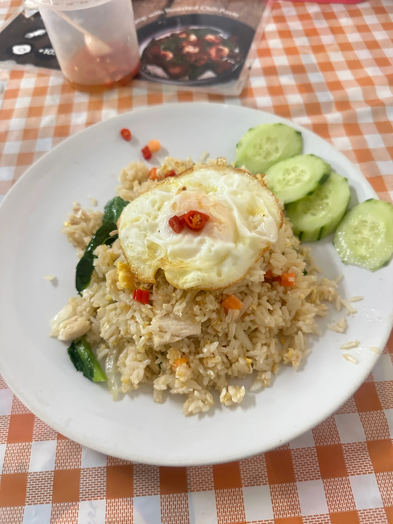 � 가격은 볶음밥 50바트 + 계란 프라이 10바트 = 단돈 60바트.