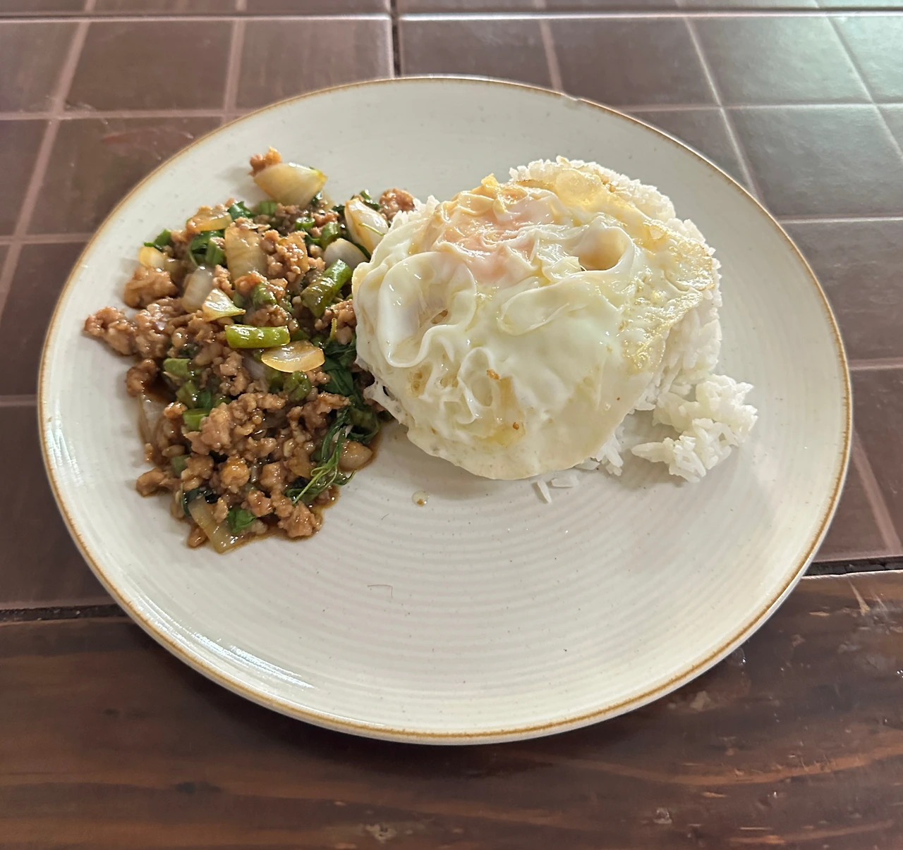 2. 팟카파오무쌉(ผัดกะเพราหมูสับ) - 돼지고기 바질 덮밥