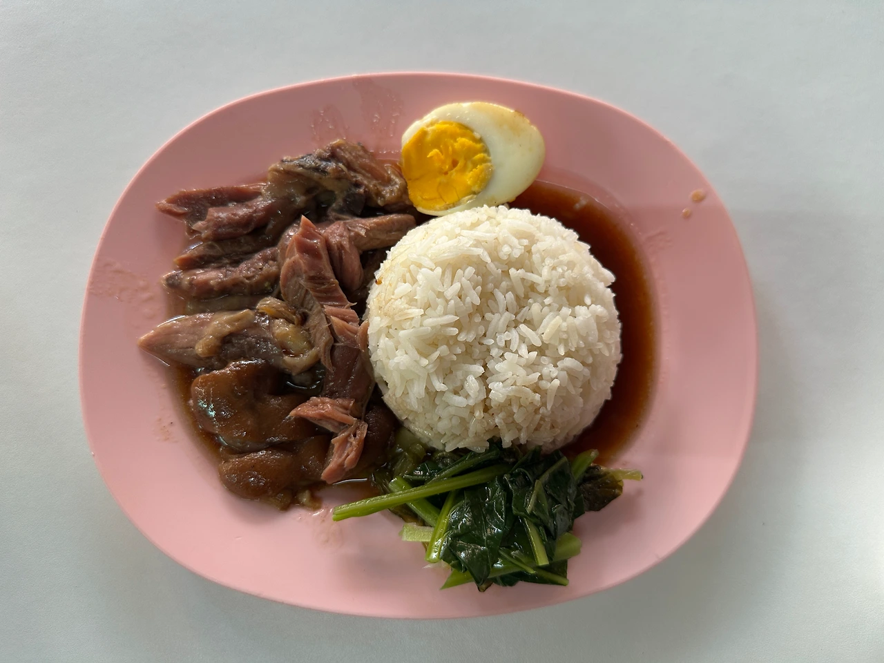 장시간 간장과 향신료(계피, 팔각 등)에 부드럽게 졸인 돼지고기, 잘 익은 삶은 달걀 반쪽, 그리고 입맛을 돋우는 겨자잎이나 청경채 같은 삶은 채소. 진한 소스는 국물 없이도 밥을 촉촉하게 적셔주고, 짭짤하면서도 달큼한 맛.