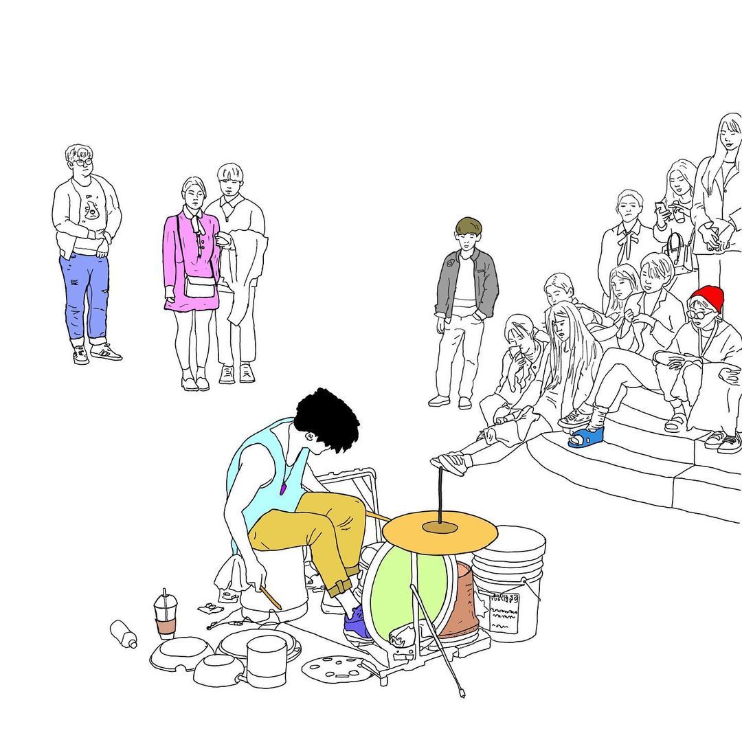 홍대 앞 거리를 걷다가 강렬한 드럼연주를 하는 버스커를 보았다.