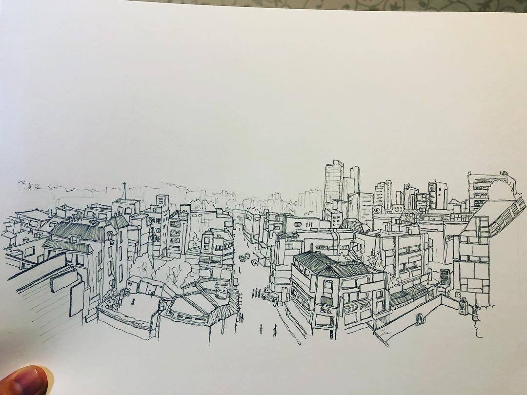 도시를 그리며 그리움은 한 편의 시가 되었다. 유치하지만, 진하게 뭉클한 감동이 있다. 흘러간 시간을 그리워하는 건 죄가 아니듯, 그림 속의 도시는 지난 시간과 지금의 경계를 지운다. 과거의 그리움을 언젠가 추억할 설렘으로 바꾼다. 이렇게, 나의 펜은 멈추지 않고, 도시의 이야기를 이 오래된 꾸깃꾸깃한 스케치북 한 페이지로 영원히 남긴다.