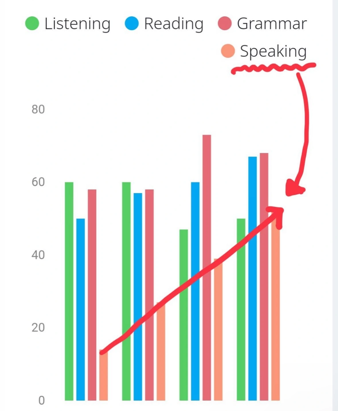 해외취업을 하려면 아무래도 영어가 필수이기에 이번 기회에 영어를 끝내자는 각오로 시작을 했고, 결과만 이야기하면 오른쪽 그림과 같이 스피킹레벨은 매달 상승한 것을 볼 수 있습니다.
