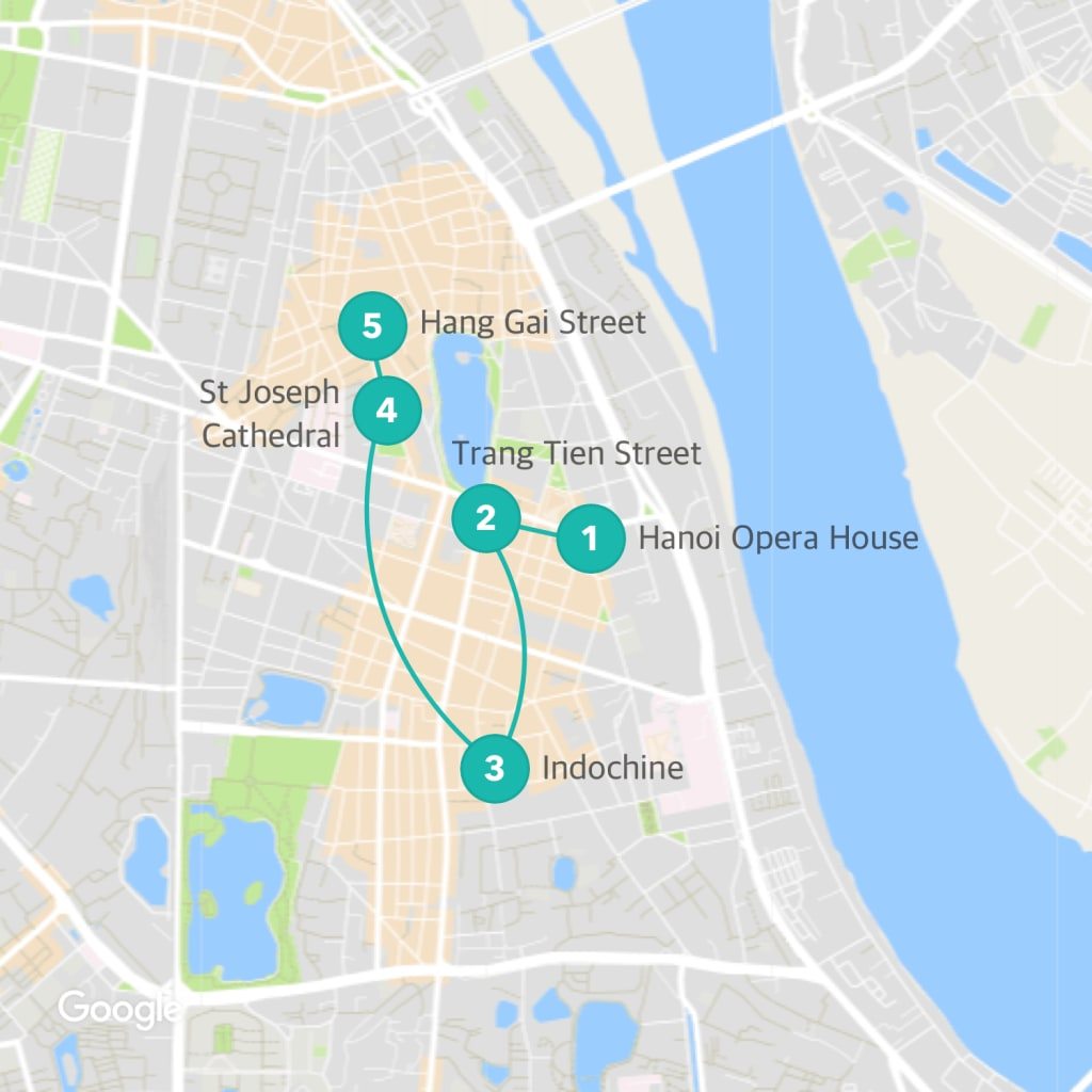 마지막 날은 쇼핑을 즐기자. 오페라 하우스에서 서쪽으로 뻗은 짱띠엔 거리는 브랜드숍이 많은 고급 쇼핑 구역. 마지막으로 분위기 좋은 하노이 맛집에서 여유롭게 점심식사를 한 후 근처의 성요셉 대성당을 둘러보자. 시간이 허락한다면 항가이 거리 실크 전문점에서 기념이 될 만한 멋진 아오자이를 구입해 보는 것도 좋겠다.