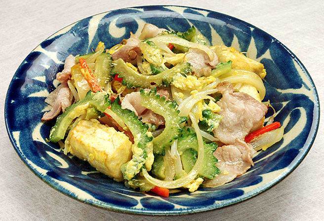 고야의 독특한 쓴맛은 콜레스테롤을 낮추는 효과가 있어 당뇨병과 비만 예방에 좋다. 미네랄과 비타민도 풍부해 여름철 더위 예방 음식으로도 제격.