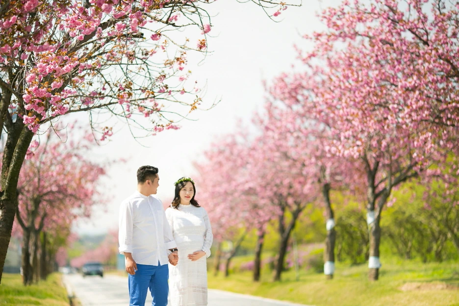 세쌍둥이 임신은 뱃속에 태아가 셋이 있는 만큼 배가 불러오는 속도가 남다르다. 보통 20주 정도면 단태아 만삭 정도로 배가 나온다고들 하는데 정말 그랬다. 난 무려 임신 19주 때 만삭 사진을 찍었다. 겹벚꽃이 흐드러지게 핀 공원에서 나의 처음이자 마지막(아마도) 만삭의 모습을 카메라에 담았다.