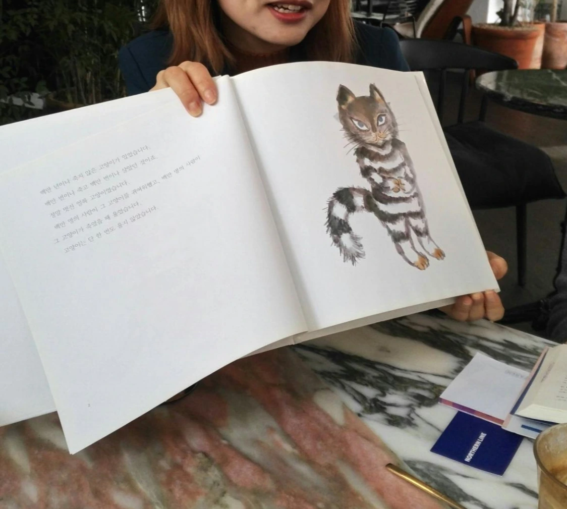 발제자 혁예는 <사는 게 뭐라고>와 짝을 이루는 <죽는 게 뭐라고>도 함께 읽었는데, 개인적으로 <죽는 게 뭐라고>가 더 재밌었다며 추천했다. 더불어 사노 요코의 대표작이라고 할 수 있는 동화책 <백만 번 산 고양이>를 직접 가져와 우리에게 보여주었다.