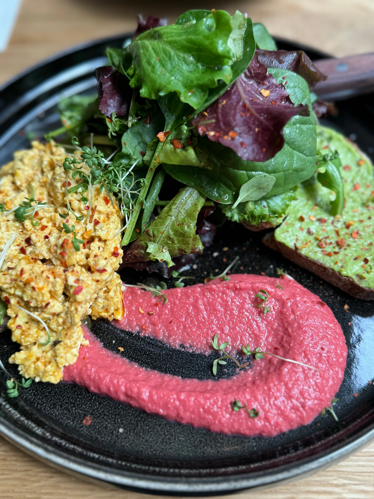 우리는 두부 스크램블 아보카도 토스트와 팔라펠(병아리콩, 마늘, 양파 등을 함께 갈아 둥글게 튀긴 중동음식) 샐러드를 시켜보았다. 한 폭의 그림처럼 플레이팅 된 음식은 빈에서 가장 유명하다는 식당의 슈니첼보다 맛있었고, 무엇보다 신선하고 건강했다. 이곳에는 채식음식만 있는 것이 아니기 때문에 논비건인 일행과 함께 와도 모두가 맛있는 식사를 할 수 있다.