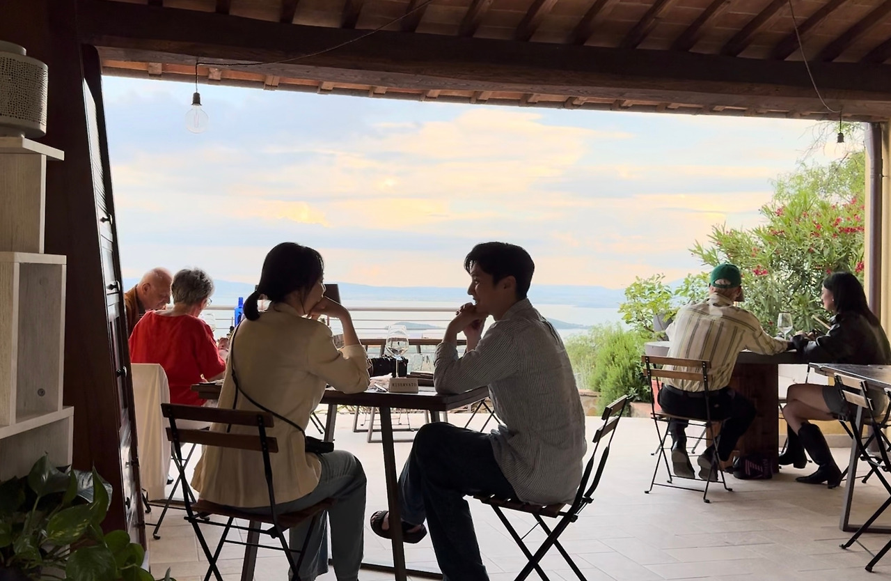 로마에서 출발해 분명히 끝도 없는 평원을 가로질러 왔는데, 마지막에 오르막길 10분을 올랐다고 해서 이렇게까지 멋진 뷰가 펼쳐질 줄이야. 숙소 앞에 펼쳐진 것은 이탈리아 중부에서도 중심에 위치한 트라시메노 호수다. 바다 같은 호수.