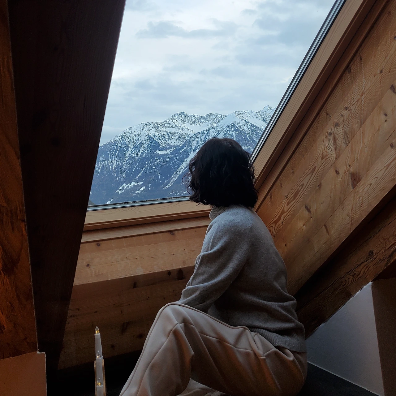 정점은 지붕창으로 창턱에 앉으면 마을과 산이 내려다보인다.