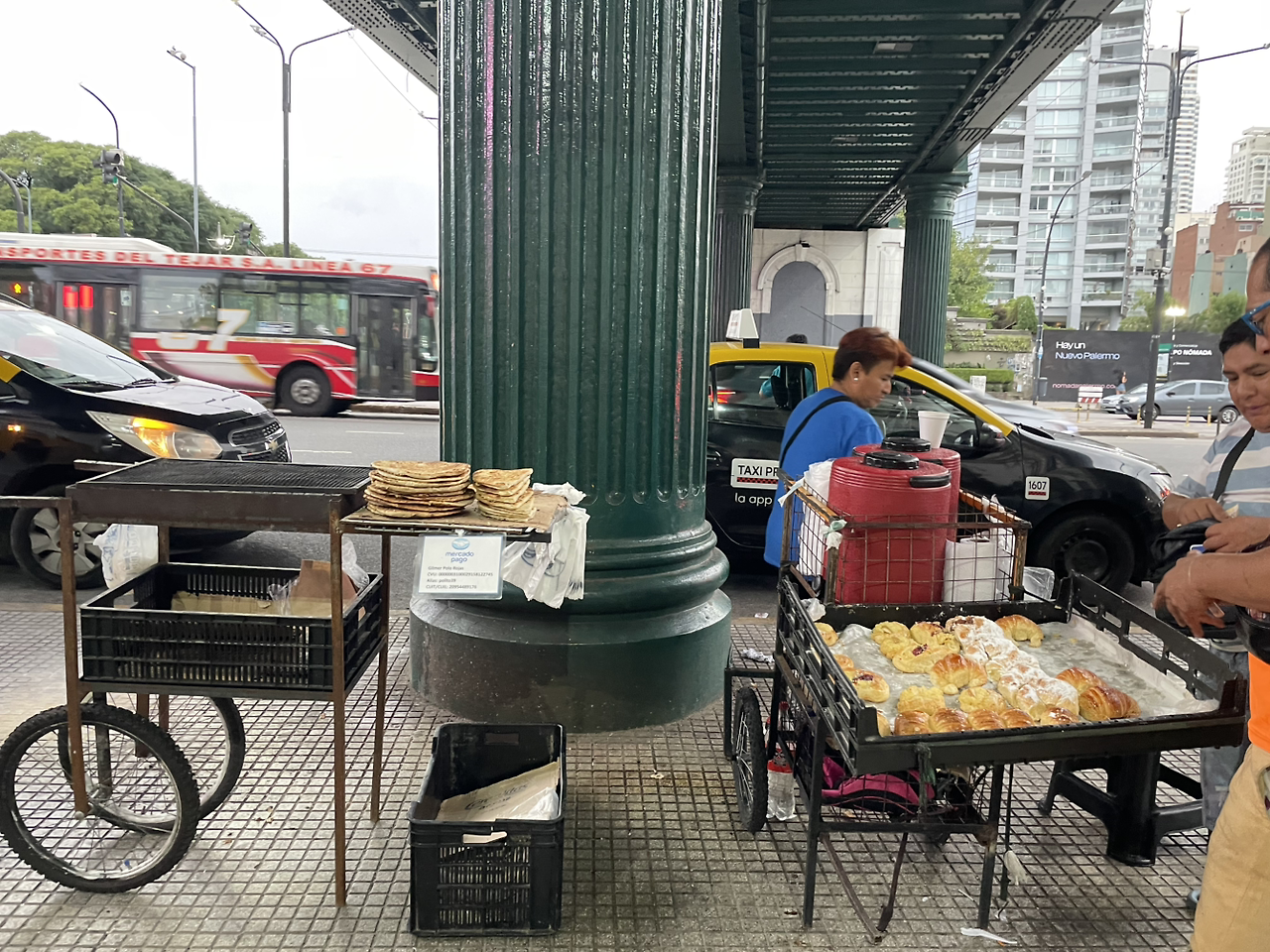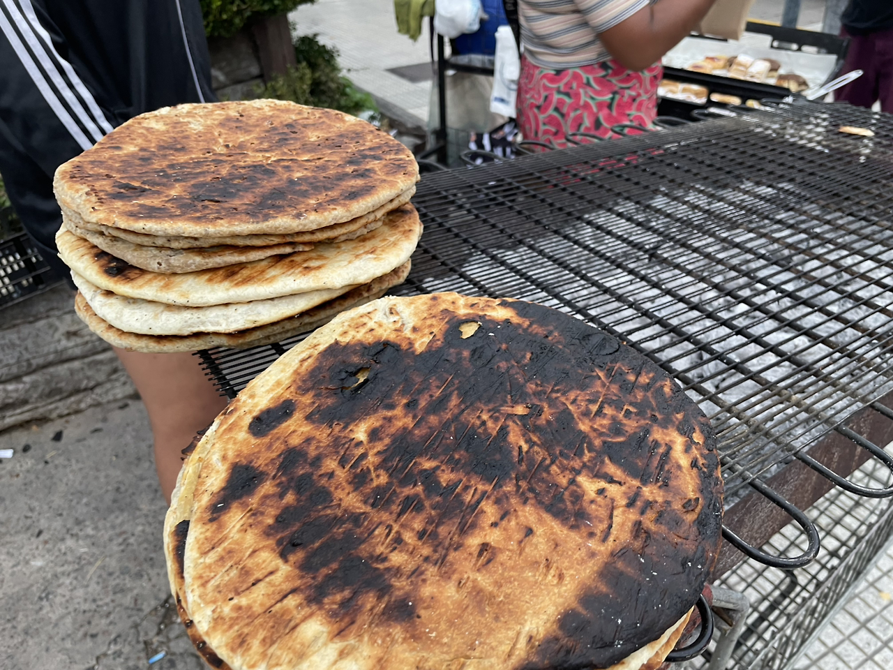 거리는 예상보다 활기찼다. 주중 아침과는 다른 여유로운 리듬이 흐르고 있었고, 길거리에는 간단한 아침 식사용 빵을 파는 노점들이 자리 잡고 있었다. 작은 포장마차 앞에는 사람들이 모여 서서 빵을 먹으며 담소를 나누고 있었고, 나는 그중 한 곳에서 치파와는 다른 형태의 동그란 빵을 하나 골랐다. 바삭한 겉면과 속에 얇게 썬 햄 같은 것이 들어 있는 간단한 빵, 가격은 2,500페소, 우리 돈으로 약 3,000원 정도였다. 한입 베어 물었을 때 특별한 감흥은 없었다. 바삭한 식감과 짭조름한 맛이 어우러졌지만, 그냥 한 끼 때우기 적당한 빵이라는 생각이 들었다.