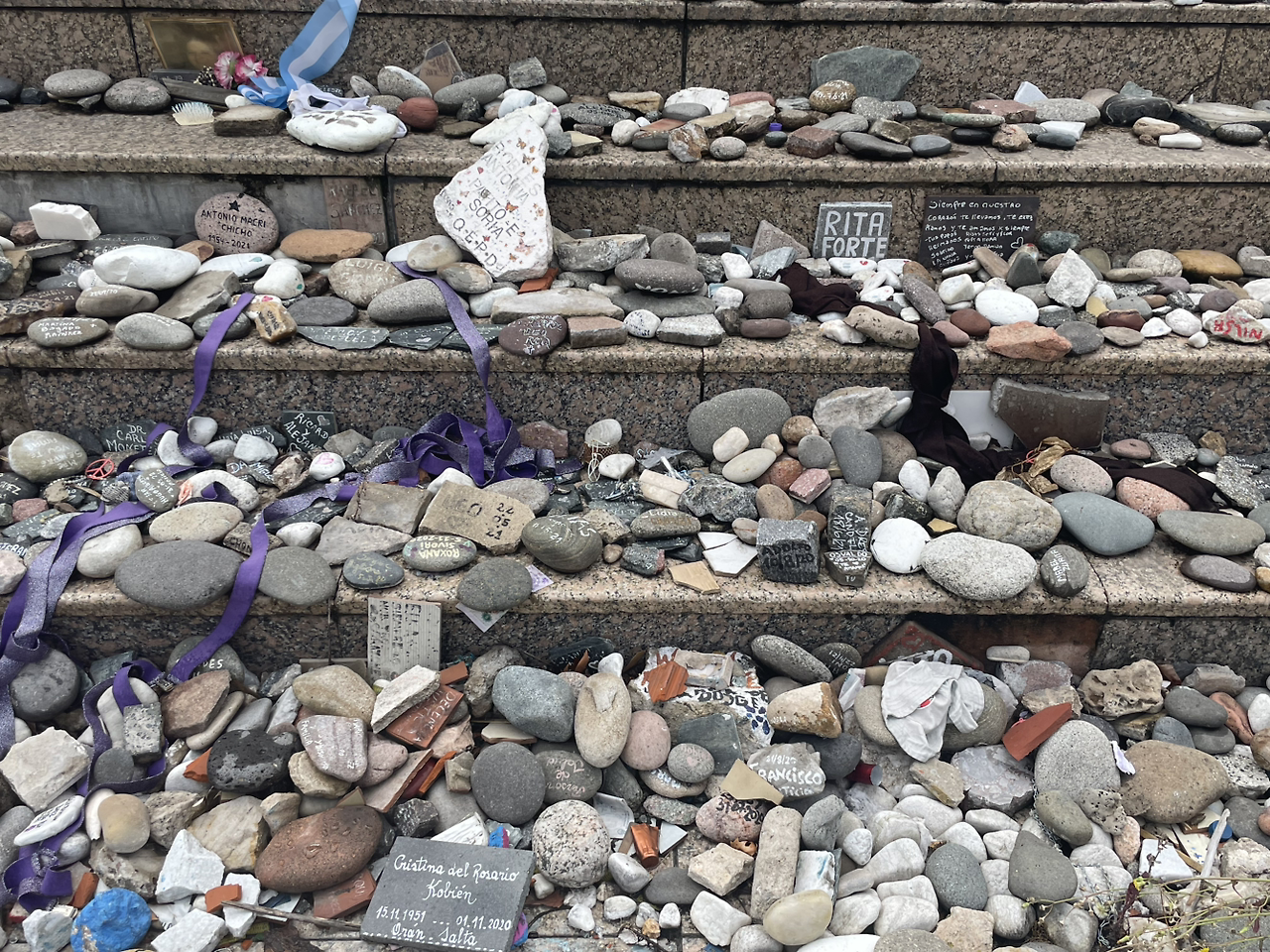 수많은 가족들이 사랑하는 이를 잃었지만, 군부는 실종자들의 행방을 철저히 감추었고, 공식적인 사망자로 기록된 이들은 거의 없었다. 가족들은 이들을 "Desaparecidos(실종자)"라고 부르며, 그들의 존재를 기억하기 위해 끝없는 투쟁을 이어왔다. 마요 광장에 놓인 이 돌들은 바로 그 실종자들의 이름을 새기고, 그들을 영원히 기억하기 위해 만들어진 것이었다.