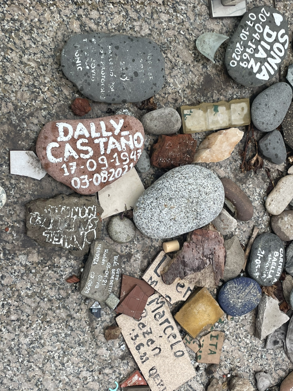 광장의 중심에는 5월 피라미드(Pirámide de Mayo)가 서 있고, 대통령궁인 카사 로사다(Casa Rosada)와 대성당이 광장을 둘러싸고 있다. 1811년에 세워진 5월 피라미드는 아르헨티나에서 가장 오래된 기념비로, 독립운동을 기념하기 위해 만들어졌다. 5월 피라미드의 울타리 안쪽에는 빼곡한 글씨가 새겨진 다양한 모양의 돌조각들이 놓여 있었다. 각각의 돌에는 이름이 새겨져 있었다. 처음엔 ‘그냥 장식인가?’ 싶었지만, 자리에 앉아 검색을 해보니 이 돌들은 1976년부터 1983년까지 이어진 군사 독재 정권 시절 실종된 사람들을 추모하는 기념물이었다.