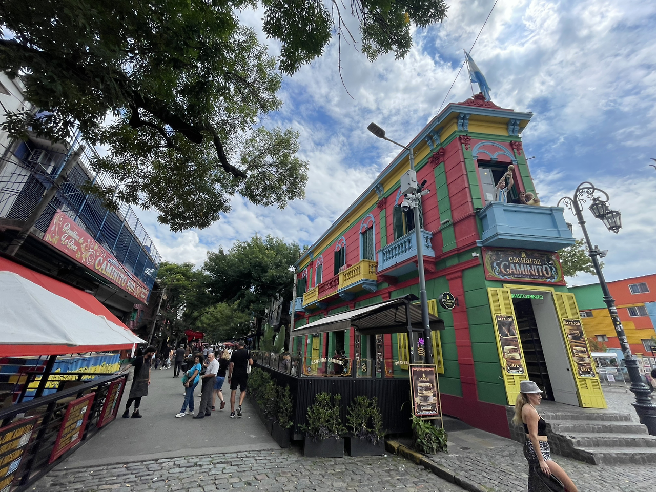 라 보카의 풍경은 마치 한 폭의 그림 같았다. 붉은색, 파란색, 노란색이 강렬하게 어우러진 건물들이 좁은 골목을 따라 늘어서 있었고, 그 사이를 자유롭게 오가는 사람들의 모습이 자연스럽게 녹아들었다. 거리 한쪽에서는 부에노스아이레스 특유의 보헤미안 감성이 물씬 풍기는 라이브 연주가 펼쳐졌고, 가게마다 테라스에 앉아 식사를 즐기는 사람들의 표정이 여유로웠다. 그 옆에서는 악사들이 즉흥적으로 연주를 시작했고, 이를 구경하는 사람들은 리듬에 맞춰 박수를 치거나 몸을 살짝 흔들며 분위기에 녹아들었다. 이곳은 단순한 관광지가 아니라, 사람들의 삶이 녹아 있는 하나의 거대한 무대 같았다.