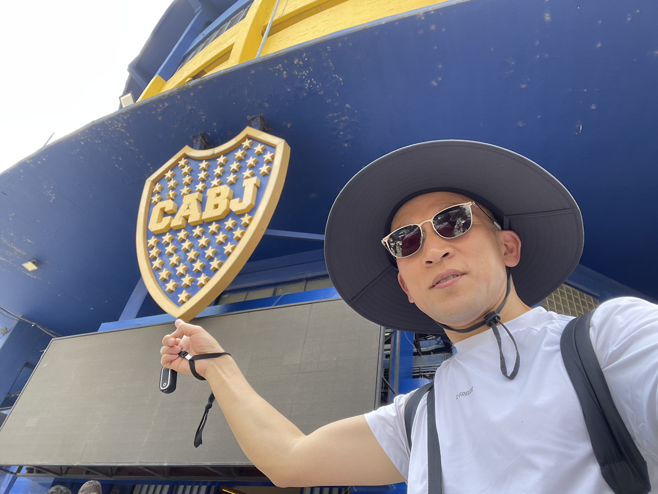 거리를 걷다 보니, 어느새 보카 주니어스(Boca Juniors) 축구 경기장 앞에 도착했다. 이곳은 단순한 축구장이 아니라, 부에노스아이레스 사람들에게는 하나의 성지 같은 곳이다. 경기장 외벽은 보카 주니어스의 상징색인 파란색과 노란색으로 화려하게 칠해져 있었고, 마치 축구를 향한 열정을 그대로 담아낸 듯한 느낌이었다. 경기장 주변의 모든 가게에서도 축구의 열기가 느껴졌다. 거리는 보카 주니어스의 엠블럼이 새겨진 깃발과 유니폼으로 가득했고, 마라도나, 메시의 이름이 적힌 유니폼도 쉽게 찾아볼 수 있었다.