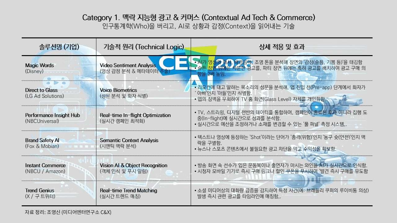 세상은 좋아져서 굳이 CES2026 현장을 방문하지 않더라도 이들 세션은 다양한 방식으로 한국에서도 충분히 조사하고 분석할 수 있는 것들이 대부분이다. 그 중에서 대표적인 것들을 그동안 정리했다. 미처 다루지 못한 것들, 가령 NBC Universal이 올림픽에서 크리에이터를 어떻게 활용할 것인지 등은 다른 자리에서 나눌 기회가 있을 것이라고 믿는다.