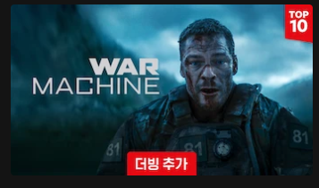 최근 TOP 10 Movie 중 1위를 기록하고 있는 <워 머신>(War Machine)에 썸네일에 뜬금없이 더빙추가라는 글이 쓰여 있었다. 뭔가 싶었다. 웬걸, 한국어 더빙이다. 원 영어와는 느낌이 조금 다르긴 하지만, 그렇다고 쌈마이라고 부를 정도의, AI 스러운 더빙이 아니었다.