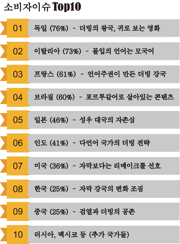 실제로 모닝컨설트의 2024년 글로벌 시청 행태 조사에서 한국 시청자의 더빙 선호도는 과거 한 자릿수에서 25%까지 급상승했다. '외화는 무조건 자막'이라는 한국 미디어의 오랜 불문율과는 사뭇 다른 수치다.