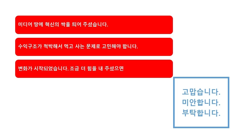 이 척박한 미디어 땅에 혁신의 싹을 틔워 주셨습니다. 그래서 고맙습니다.