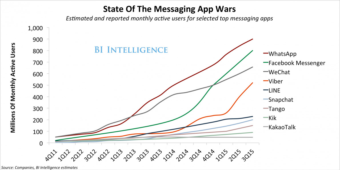 전 세계 어느 메신저 사업자도 안정적인 비즈니스 모델을 만들어내지는 못했습니다. 그러니 당장 이용자 수와 이용 양이 많다고 해서 메신저를 중심으로 그림을 그리자고 이야기하는 게 쉽지 않습니다. 새로운 아이콘으로 성장하고 있는 스냅챗 역시 수익 모델이라는 측면에서는 할 말이 별로 없습니다. Series A부터 C까지 투자를 지속적으로 받긴 했지만 말입니다. 2015년에는 약 $50 million 정도 수익이 발생했고, 2016년에는 $300 million 정도의 광고 매출이 있을 것이라고 전망은 합니다만, $16~19 billion으로 추정되는 시장 가치에 비해서는 미약합니다.