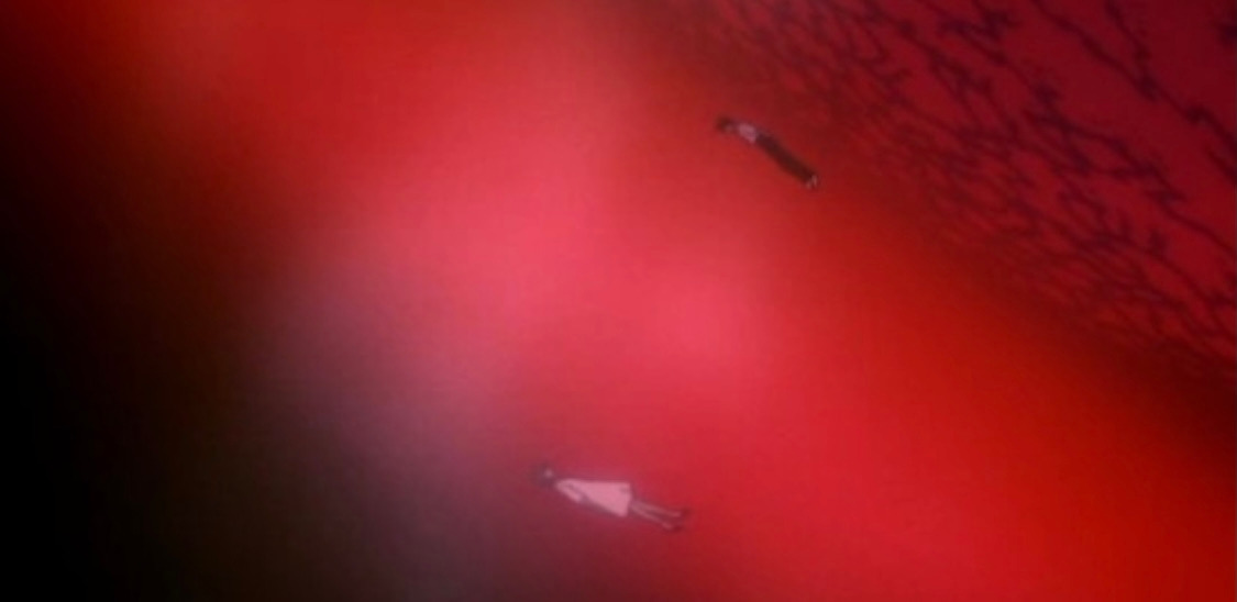 이때의 작화는 실로 환상적이다. 에반게리온 하면 거대 로봇의 둔탁한 타격감이 느껴지는 동세와 버블시대의 정석과도 같은 세밀한 묘사가 도드라지는데 세계의 멸망을 그린 이 장면만큼 아름다운 것은 내 기준에서 또 찾기 힘들다. 시공을 아우르는 범우주적 연출을 작은 화면에서도 까마득히 빠져들도록 만들어 놓았다. 의식의 제물들이 달고 있는 오르가즘에 달한 소녀의 얼굴은 기괴함 그 자체다. 하늘 사방에 못 박힌 메시아와 원시 지구를 떠오르게 하는 벌건 바다. 생명의 멸종은 이만큼 균형적이지도, 얼빠질 정도로 아름답지도 않을 테지만 영상 속에 구현된 세계의 종말은 내 안의 어떤 쾌락점을 톡톡 건드린다. 흐리멍덩하게 굴러가던 세상이 그 누구의 손에서도 구해지지 못했다는 점이! 심지어 그렇게 멸망한 세상이 너무나 선명하게 화려하다는 것이.