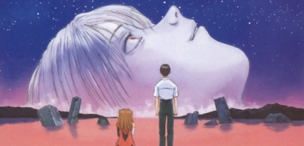 그리고 세계의 종말을 위해 쓰인 도구, 에반게리온에 타고 있던 신지와 아스카는 인간의 형상으로 모래밭에 떨궈진다. 우주 같은 하늘에 오렌지색이다 못해 시뻘건 바다, 인간으로 이루어진 액체가 파도치는 그런 바다에 도태된 인류로 버려졌다.