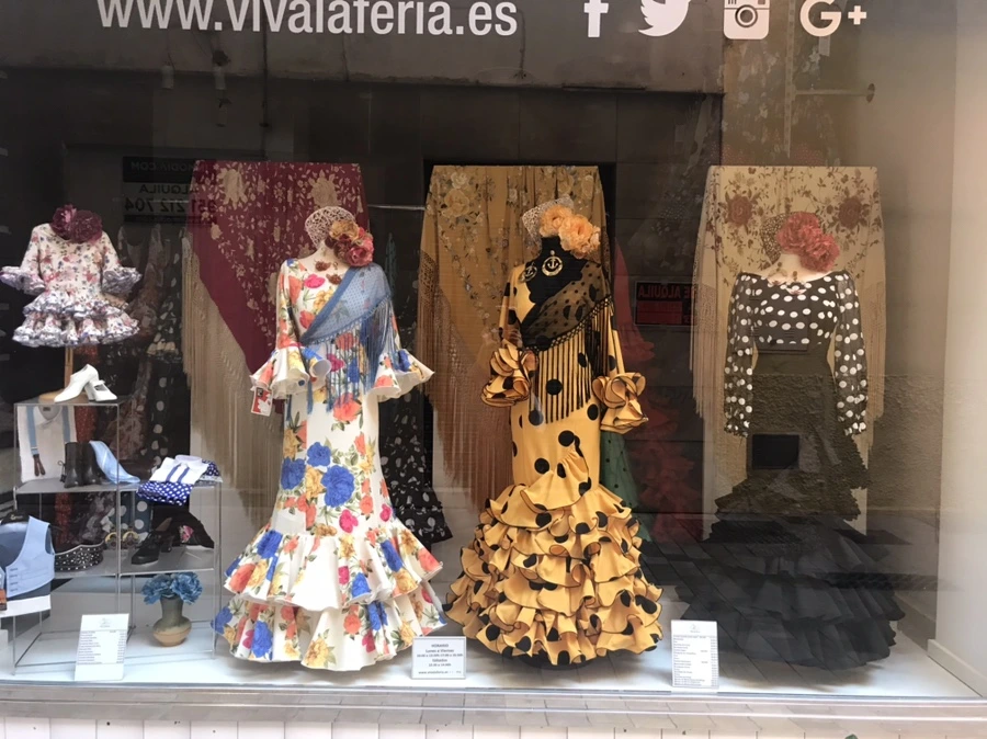시장, 광장, 페리아 사람들이 모이는 곳에는 항상 플라멩코가 있었다. 그림에서 댄서들은 긴 치마에 커다란 숄을 걸치고 손이나 머리에 꽃을 달고 있었는데 전통 플라멩코 의상이 19세기 안달루시아 의복에서 기원했다고 한다. 여성은 숄과 긴 주름 장식이 달린 치마를 입고 부채를 들고 남자들은 납작한 코르도바식 모자와 몸에 달라붙는 검정 바지를 입는다고.