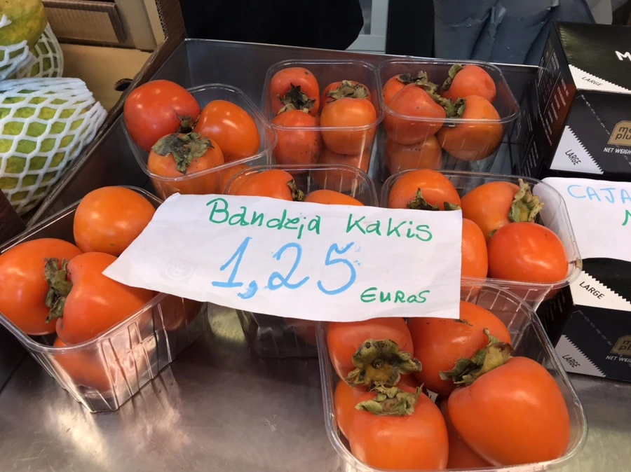 3유로에 작은 봉지 하나를 샀다. 한 손으로 까 입에 톡 던져 넣으며 말라가 중앙 시장인 Atarazana 시장으로 향했다. 필요한 채소 좀 사고 나오는 길 홍시하고 비슷하게 생긴 과일이 있어 다가갔다. 아니 이건 홍시다. 감이 있다는 얘기는 들었지만 스페인에서 홍시를 먹을 수 있으리라고는 상상도 못 했다. 심지어 6개에 1.25유로밖에 안 한다. 안 살 수가 있나.