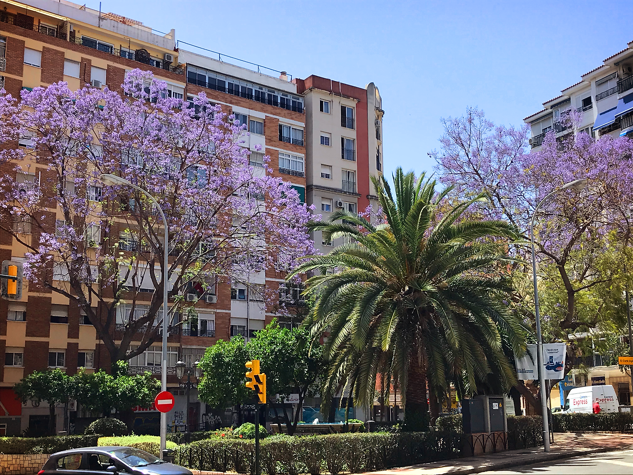 들어갈 수 없었던 구시가지 입구를 당당하게 지나 말라가에서 제일 좋아하는 열대 나무가 삐죽삐죽 솟아 있는 산책로를 천천히 걸었다. 4월을 통으로 집에서 보내며 봄을 잃어버린 것 같아 속상했는데 곳곳에 피어 있는 색색깔 꽃들에 금세 기분이 풀렸다.