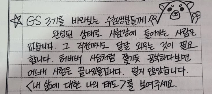 "나는 된다. 시기의 문제일 뿐"이라는 생각을 갖고, 무너지지 마세요. 이 시험은 하다보면 되는 시험이니까요.