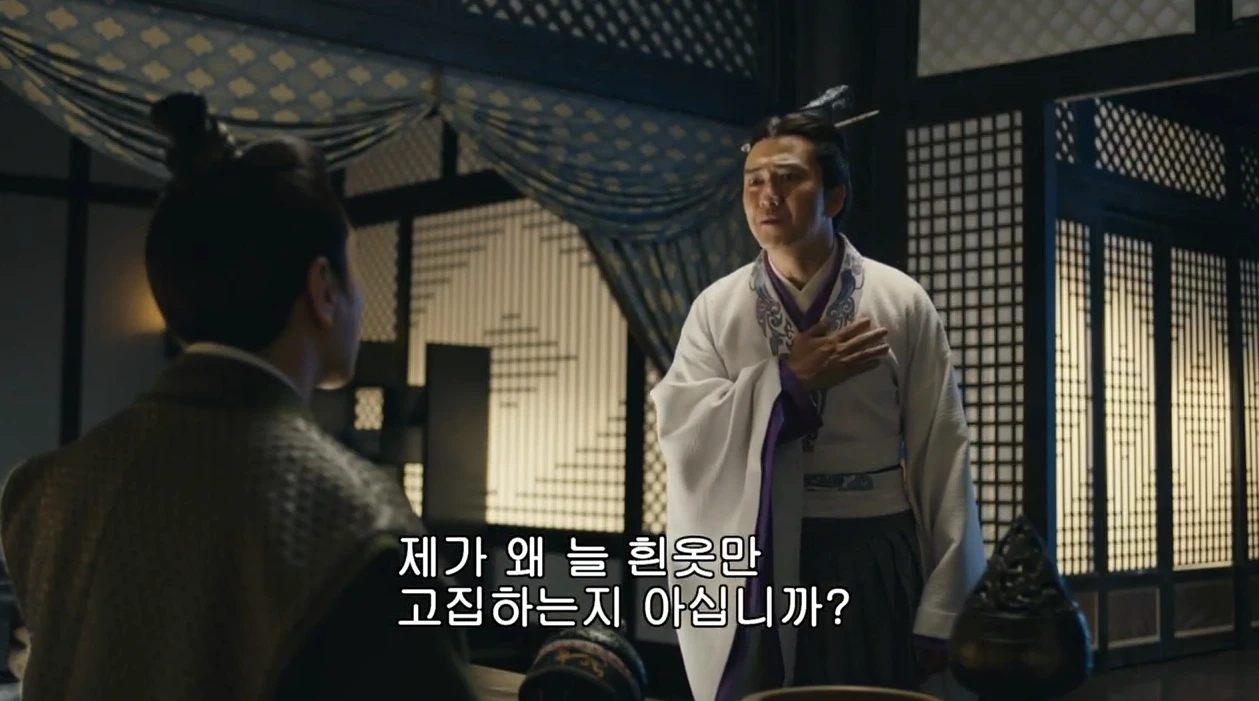 조식이 "시험"에 혼란스러워 할 때, 그는 말한다. "왜 내가 흰 옷을 입고 다니는 지 아느냐! 마음만은! 내가 깨끗했다라는 것을 늘 다짐하기 위해서다!"라고.